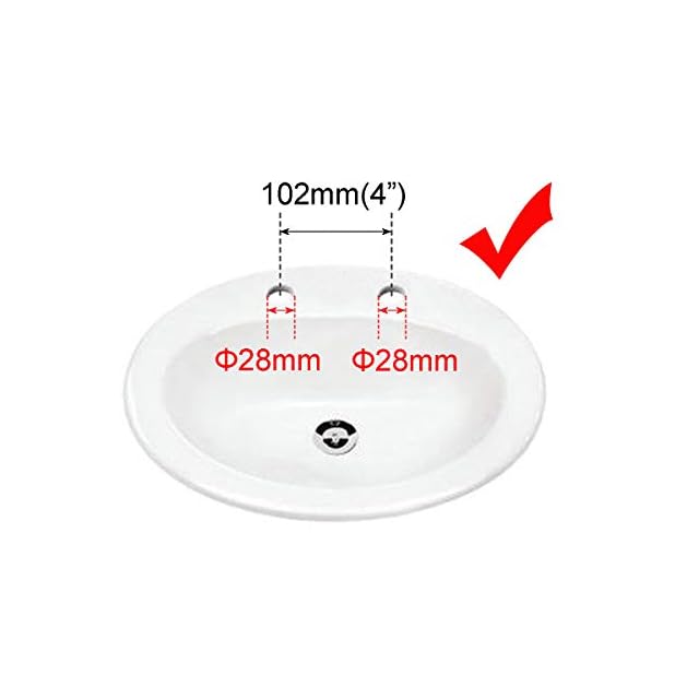 取り付け穴径(2ホール): 直径25-36mm、取り付け芯ピッチ:105mm。通常規格(取付穴径:直径28mm、ピッチ:102mm)の洗面台にも取り替えます。