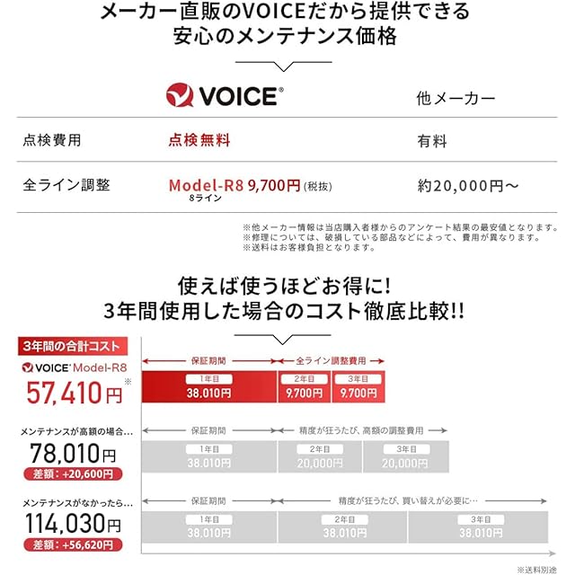 ✅【 全ては安心してお使い頂くため 保証後のメンテナンス費用を公開している 唯一のメーカーです 】 レーザー墨出し器を使用しているユーザーはご存知だと思いますが、保証後にメンテナンス費用を公開しているメーカーはありません。VOICEでは、ユーザーが安心して購入・使用できるようにアフターメンテナンス費用を公開させて頂いております。