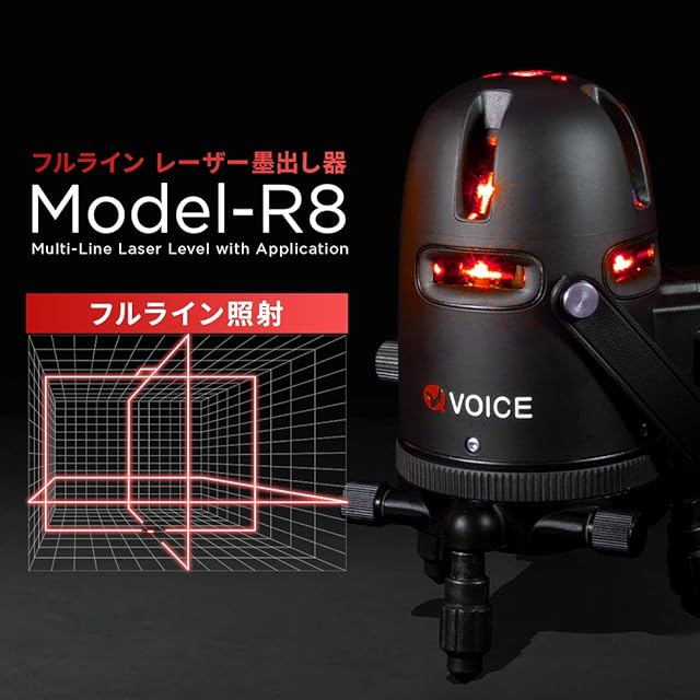 V VOICE レーザー墨出し器 フルラインレーザー R8 メーカー フルライン照射モデル アプリからの遠隔操作 タッチスイッチ ブラック