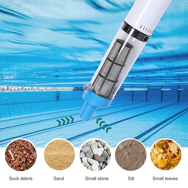 操作が簡単:手持ちプール掃除機はスタイリッシュでポータブルなデザインを誇り、プール内を簡単に移動できるため、最も狭いエリアにも簡単にアクセスできます。