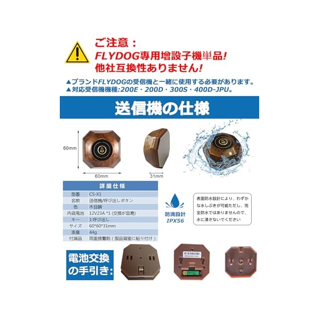 【梱包内容】呼び出しベル 送信子機10個(電池、固定両面テープ付属)。★★★対応機種:ブランド名:FLYDOG の受信機本体 専用子機!