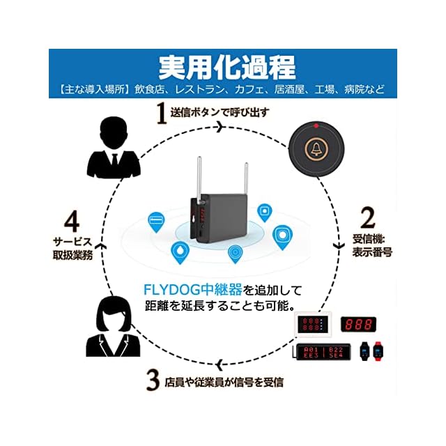 【様々な場所で大活躍】人件費を削減し、サービス品質の向上:飲食店・レストラン・茶屋町・居酒屋・病院,診療所・カフェ・介護施設・銀行・駐車場などでおなじみのチャイムです。