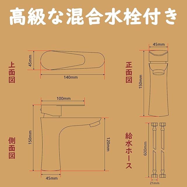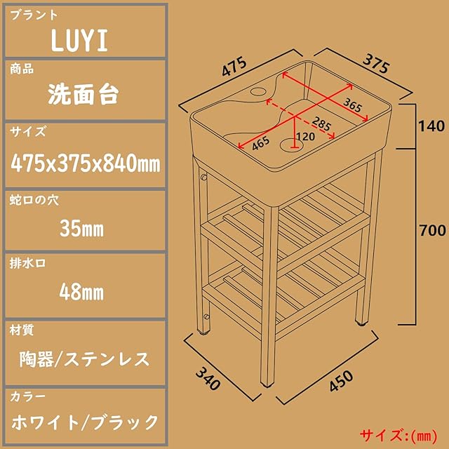 【商品サイズ&設置説明】:洗面台のサイズ:475*375*840mm、重さ:15kg、排水口径:45mm。蛇口の取り付け穴径:35mm、水栓の取り付けホースの規格:G1/2ナッツ(21mm)。 この洗面台ボウルはホテル、家、会社、ビル、浴室、トイレなどに適用します。商品は設置が簡単なので、日本語取扱説明書どおりに設置すればでいいです。オシャレなデザインを与えています。