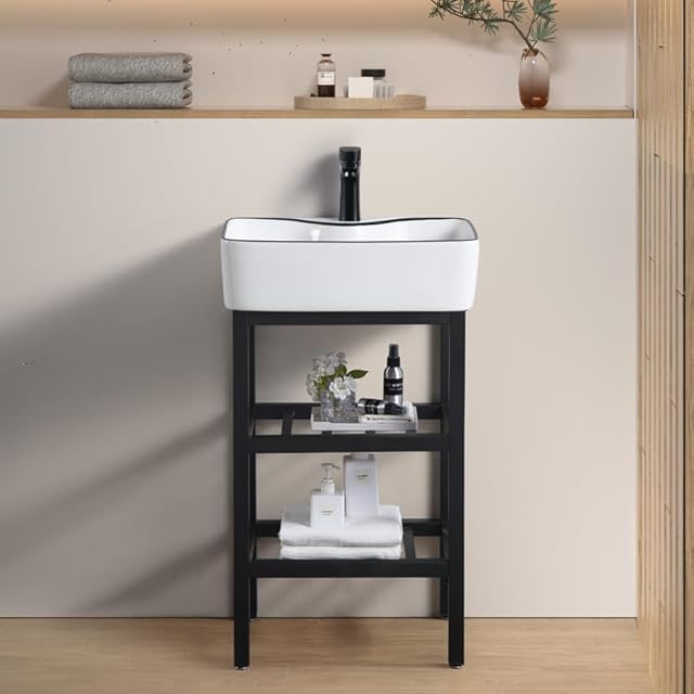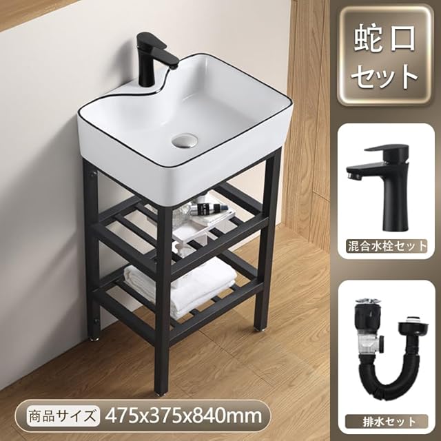 LUYI 洗面台 シンク 475*375*840mm 陶器 洗面ボウルセット ガーデン 手洗い台 オシャレ 水栓付き