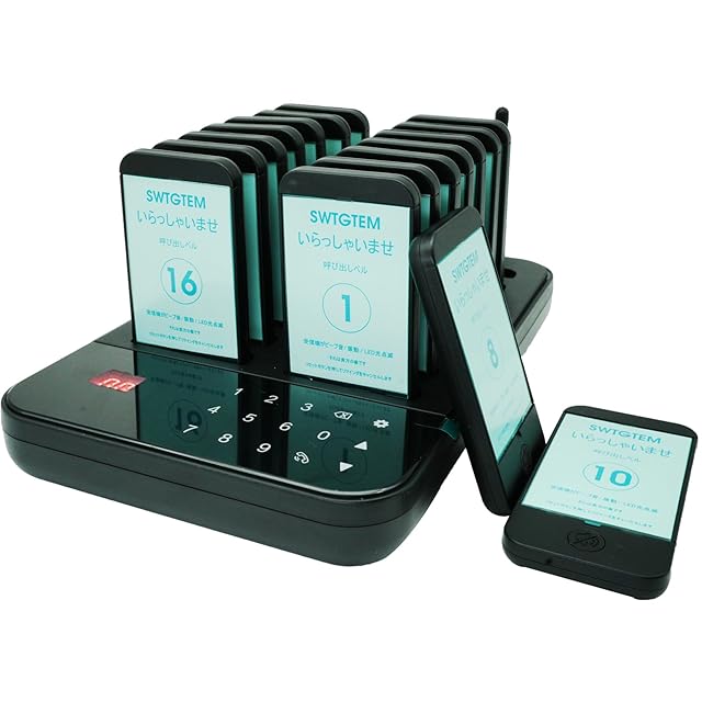呼び出しベル 飲食店 呼び出しベル ワイヤレス 長距離 1000mまで【電波法適合】 IP67 防水 子機 日本語説明書付き 送信機増設可 1-999秒調整可能 店舗 呼び出しチャイム 飲食店 フードコート(受信機16台)
