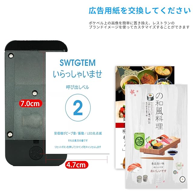シールを交換する各レストランのポケットベルシステムはポケットベル上の写真を置き換えることができ、ロゴや特色料理を置くことができます;子機からビープ音、ジッタ、振動が発生した場合は、停止ボタンを押すとキャンセルできます