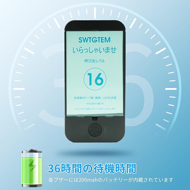 使用時間が長い、各注文ブザーは食品車に3.7 V 200 mAh充電可能電池を内蔵している、注文準備ブザーは2-3時間以内に充電できます。フル充電後約24時間稼働