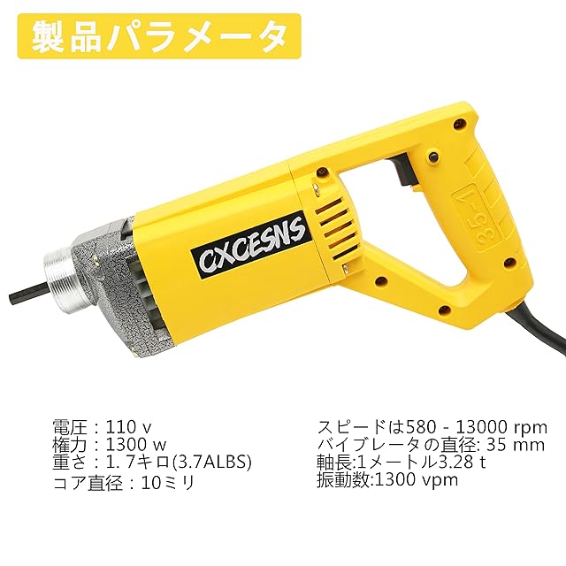 ハンドヘルド式コンクリートバイブレータ 110v 電動コンクリートバイブレータは 毎分13,000回振動します 振動棒Ф35mm ロッド長さ1m コンクリート バイブレータ 生コン 左官 電動工具 打設 建築 DIY
