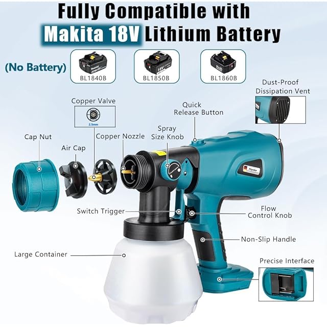 互換 マキタ18Vリチウムバッテリ:Hipokeコードレスペイントスプレーヤーキットは、マキタBL1820、BL1830、BL1840、BL1850、BL1860 18Vリチウムバッテリーと完全に互換性があります。(バッテリーは含まれていません)