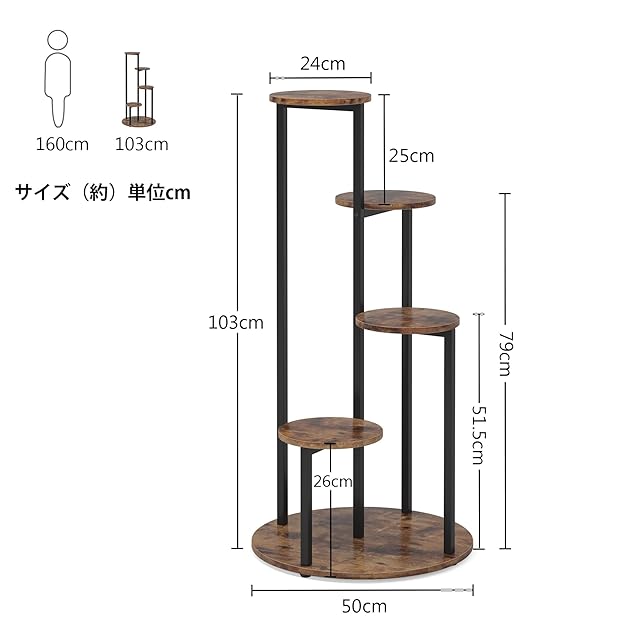 Tribesigns フラワースタンド 5段 花台 室内 植物ラック 盆栽スタンド 観葉植物棚 木製 幅50×奥行50×高さ103cm