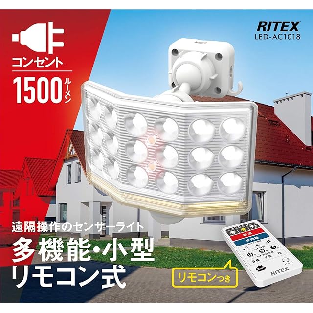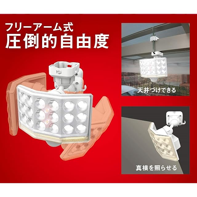 ムサシ RITEX フリーアーム式ミニLEDセンサーライト(18Wワイド) 「コンセント式」 LED-AC1018 ホワイト