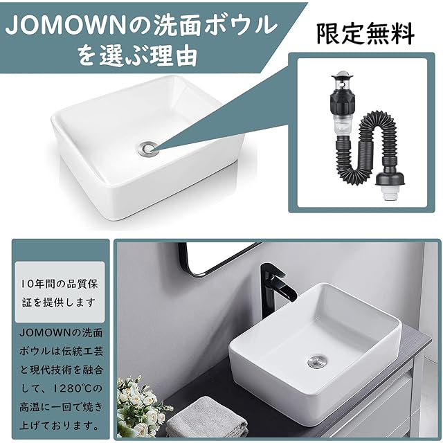 ♥【高品質&掃除しやすい】:JOMOWNの洗面ボールは1280℃以上の高温で焼き上げております。 伝統工芸とモダンのデザインを組み合わせる白い洗面ボウルは洗面所の全体が清潔でシャープな印象を残しやすいです。洗面器の表面には釉薬が採用して、滑らかで光沢があります。表面が滑らかで汚れが溜まりにくいので、サッとふくだけで、きれいになります。