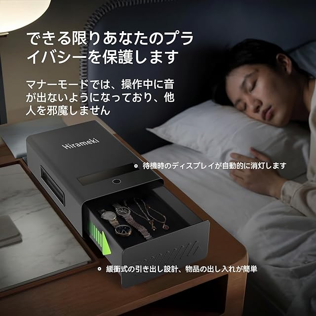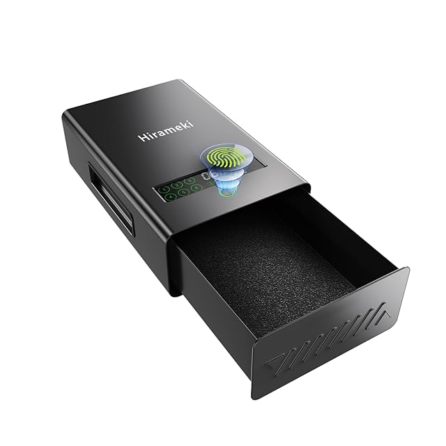 Hirameki 指紋認証 金庫 小型 家庭用 防犯 金庫 貴重品ボックス 99組パスワード 99指紋設定可能 三重開錠方式 鍵付き 液晶ディスプレイ 省エネ設計 引き出し式収納 防滑底