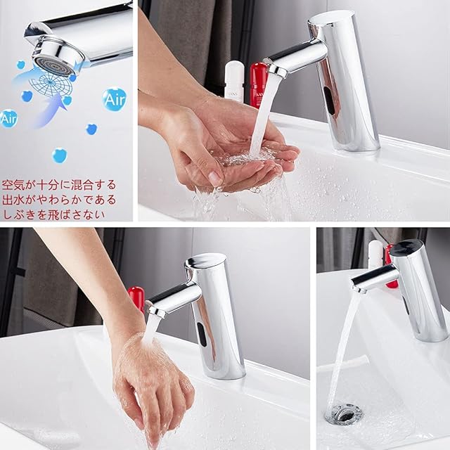 【赤外線センサー】:このセンサー水栓は4本AAバッテリー(別売)で動きセンサーします。センサが作動すると、手が検知範囲内に入ると自動的に水が出ます。手を離せば自動で水が止まります。敏感で便利なインテリジェントガイダンスデバイスは、電気と水を節約します,また、細菌感染への暴露を減らします。