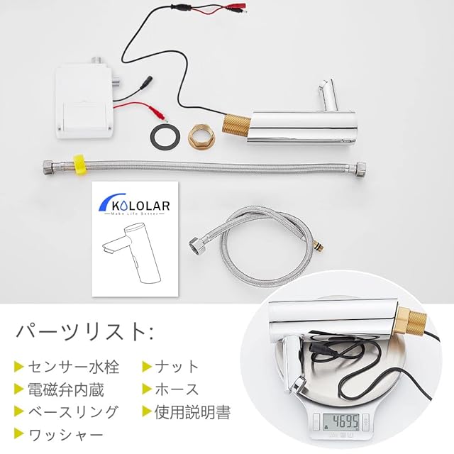 【取り付けが簡単】:セット内容:蛇口x1、電磁弁(電池箱)x1、冷熱水角弁x1、水道管x3、取り付け部品。日本語取付説明書と蛇口を取り付ける必要なキットが全部付属しておりますので、簡単に取り付けられます 。