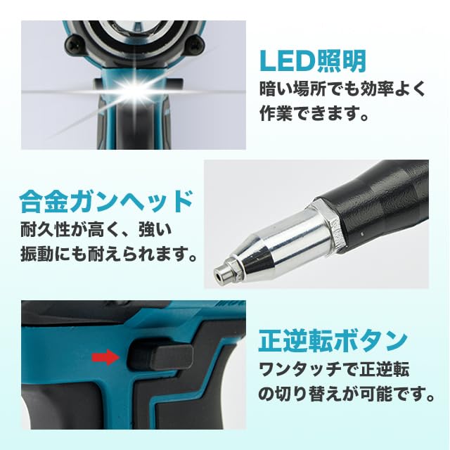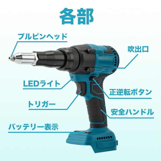 リベッター 電動リベッター マキタ 互換 コードレス リベット工具※バッテリーと充電器は別売りです。