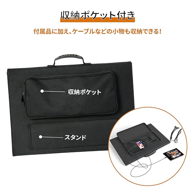 【急速充電】ソーラー充電器として、QC3.0USBポートおよびType-Cポート(最大15V 4.5A)から2台のデバイスを同時充電可能です。Type-Cポートは5V3A/9V3A/12V3A/15V3A/20V3Aまで、最大45Wの高出力でPD対応のPCデバイスへ急速充電ができます。スマホ、モバイルバッテリー、タブレット、ラップトップ、GPS、デジタルカメラなど様々な設備に急速充電できます。※Xperia、HUAWEIは独自規格のため急速充電できない可能性があります。※太陽光を真正面(90°)で受けるよう、パネルの向きを調整すると、より効率的に発電できます。