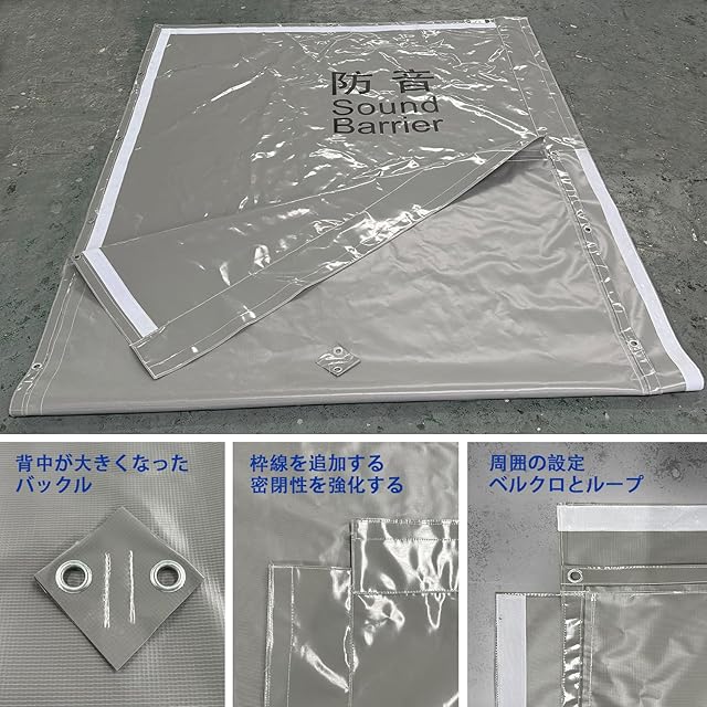 【高品質素材】当社の防音材 壁、特殊な防音設計を備えた塩化ビニル樹脂でコーティングされた高強度ポリエステル基布で作られています。 ボタンホール:すべて銅製のボタンホールが使用されます。 硬度が高く、変形しにくく、錆びにくく、より美しく、長寿命です。 特徴:防水、難燃性、遮音性、老化防止、亀裂防止、環境保護など