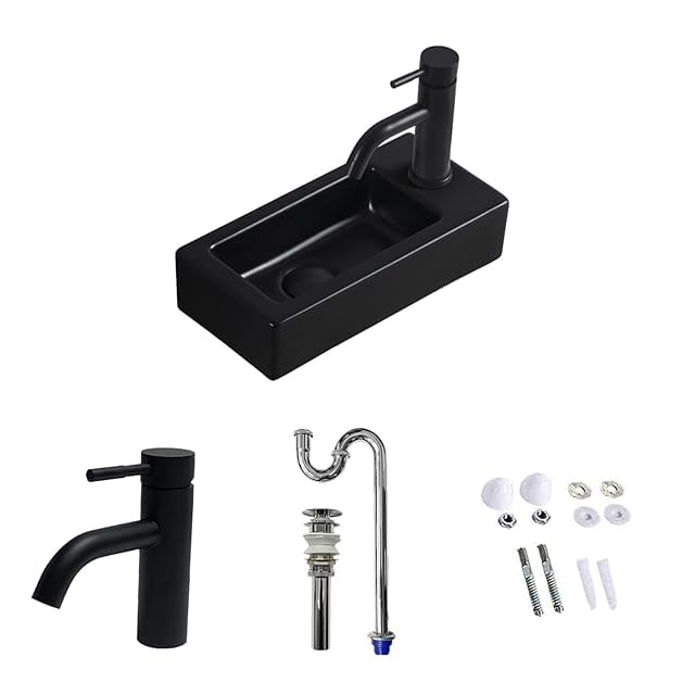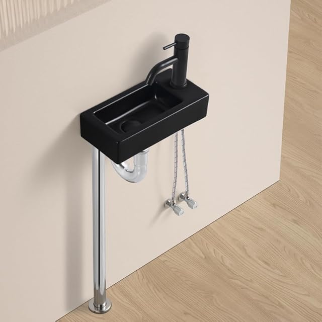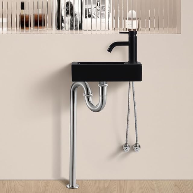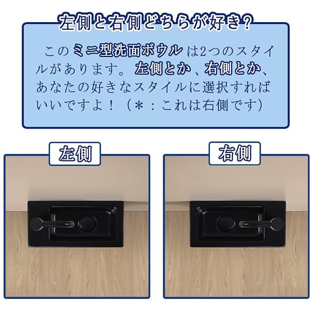 【Sトラップ排水セット付き】 ブラック 手洗い器 壁掛け おしゃれ 手洗器 コンパクト 小型洗面ボウル ミニ型 洗面台 手洗いボウル 壁付け型 陶器 手洗い台 375*190*95mm (右)