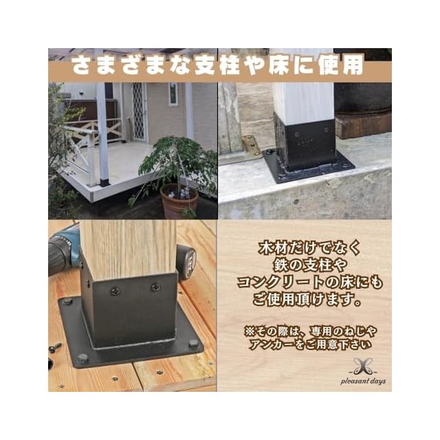 ✅【ラティス 固定金具】バーコラやテラス、ラティス・フェンスなどの、さまざまな支柱を床材へ固定するための金具です。