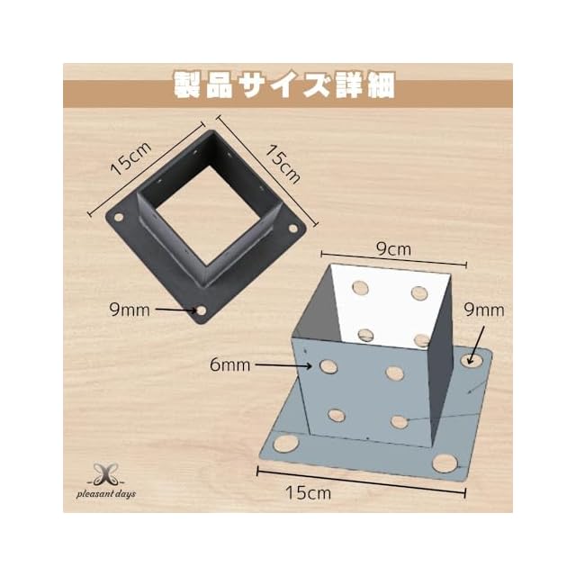 ✅【サイズ】床材との設置部分 約15cm x 約15cm / 支柱の差し込み部分 約9cm / 床材との固定の穴 9mm / 支柱との固定の穴 6mm ネジやアンカーはシルバーの場合があります。