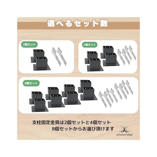 ✅【支柱固定金具4個セット】支柱と金具を固定するためのネジと床(地面)と金具を固定するアンカー・ボルト付属。