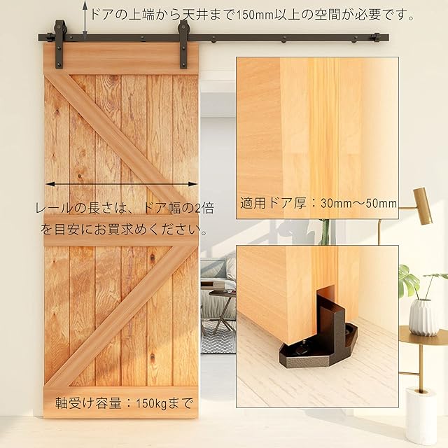 【ご使用注意】 取り付ける壁は、丈夫なコンクリート壁やれんが積壁、頑丈な木壁等強度のある壁であることを確認してください。レールの推賞寸法:取付間口より少し長くて、ドアの幅の2倍ぐらいをおすすめします。