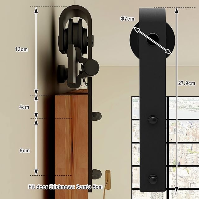 【耐荷重】:100KGまで。対応可能なドアの厚さ:30mm-50mm。 ガイドレールの幅は40 mm、ガイドレールの厚さは6 mm、ローラーの直径は70 mm、ドアの上端から天井まで150mm以上の空間が必要です。