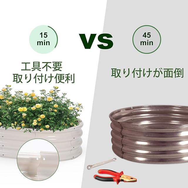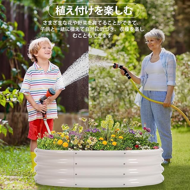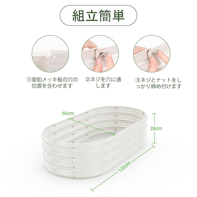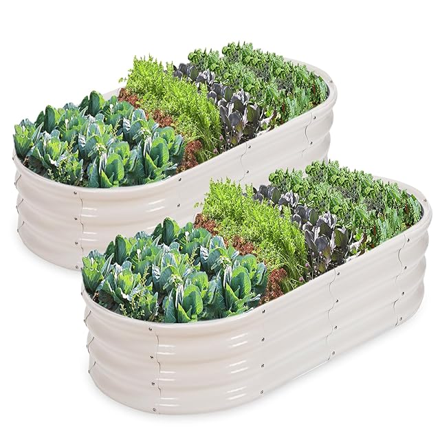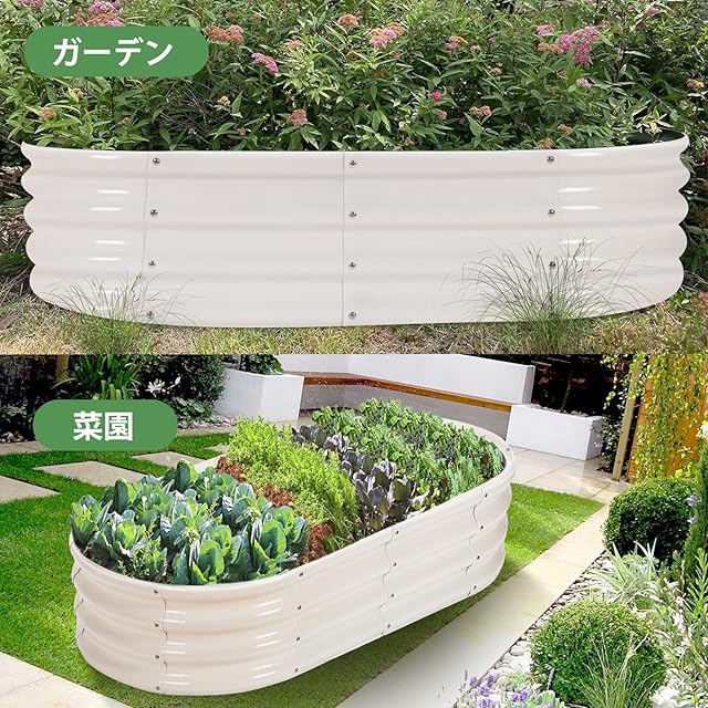 DEWEL レイズドガーデンベッド 亜鉛メッキ プランターボックス 金属製 ガーデンベッド ガーデンボックス プランター 工具不要 屋外 野菜用 植物 花 (アイボリーホワイト, 2個入り(120x60x28cm))