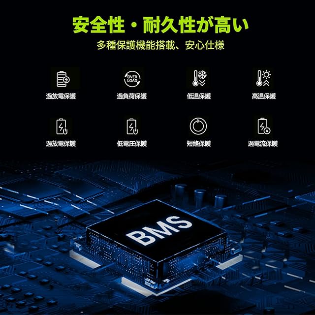 [高安全性と安心できるアフターサービス] PSEやUN38.3などの必要な認可を取得し、安全性の高いリチウム電池を使用し、電池のエネルギー効率を最適化しながら長寿命化を実現しました。また、BMS(電池管理システム)により電圧や温度を正しく管理し、過充電や過放電を防止して安全性を高めています。購入後も安心できるアフターサービス:24ヶ月長期保証+無期限のカスタマーサポート。何かご質問やご意見などがございましたら、いつでもお気軽にカスタマーサービスへお問い合わせください。
