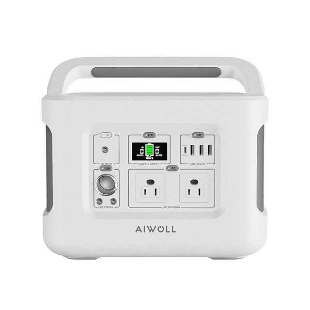 AIWOLL ポータブル電源 リン酸鉄リチウム 515Wh/160938mAh AC出力600W (瞬間最大1200W) 大容量ポータブルバッテリー 充放電サイクル3,000回以上 高耐久 BMS電池保護機能 パススルー機能付き 高速充電 PSE認証済 LEDライト付き 純正弦波 MPPT制御方式 ソーラー充電 災害対策 節電