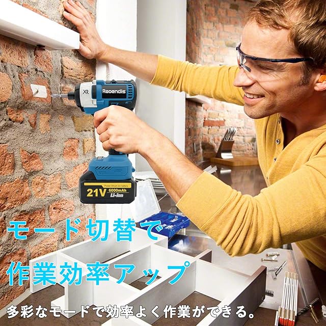【充実な付属品&アフターサービス】製品リスト:ドライバー本体* 1、65mmビット*4、ソケット* 4、21Vバッテリ6000mAh* 1、充電器* 1、収納ケース* 1、日本語取扱説明書*1。アフターサービスの12ヶ月間国内の安心保証、安全認証、不良品が出た場合、時間内にご連絡ください。 ご注意:他人のバッテリーは2.0mAH/4.0mAH、当社のバッテリーは6.0mAHの大容量です。