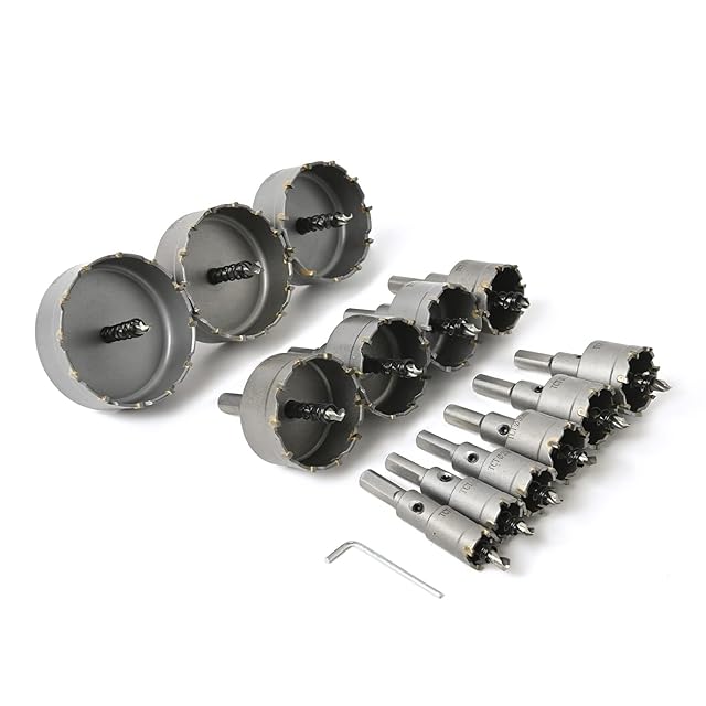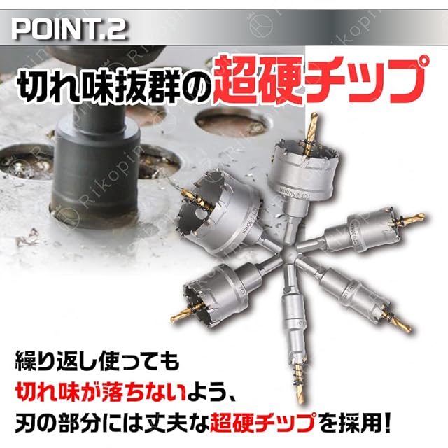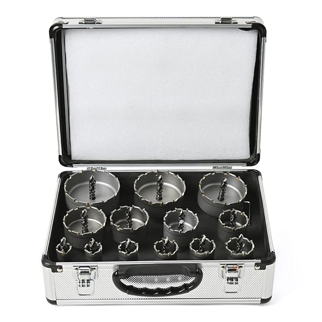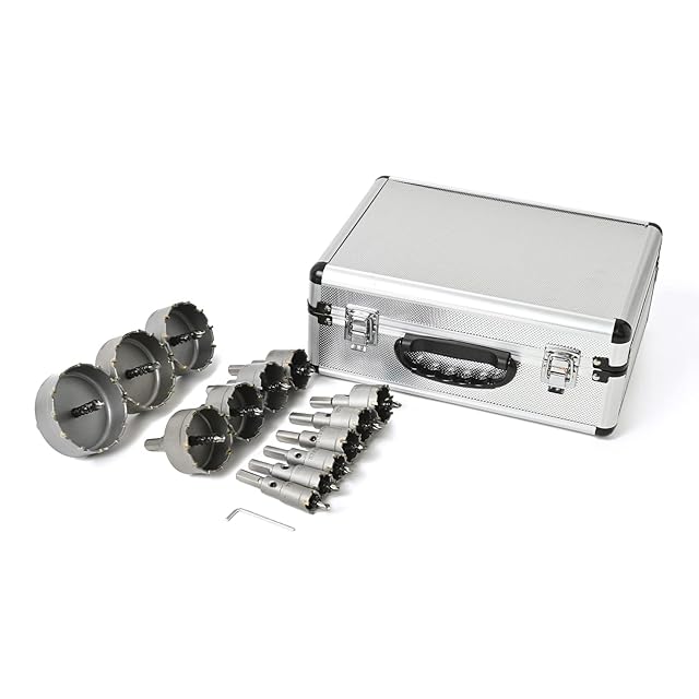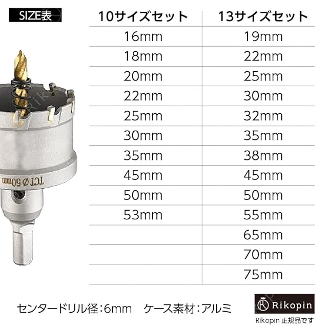 Rikopin(リコピン) 超硬 ステンレス ホールソー 13本セット ツバ無し 専用アルミケース付き 75mm 70mm 65mm 55mm 50mm 45mm 38mm 35mm 32mm 30mm 25mm 22mm 19mm 電動工具 配管工事 ホルソー 水道管 空調 インパクトドライバー (13p)