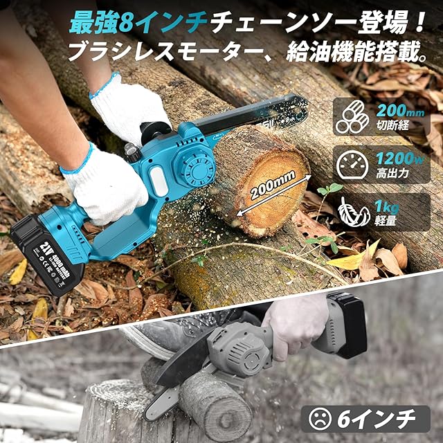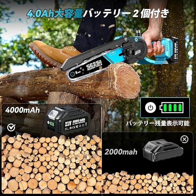 【充実のセット内容・安心の品質保証】■ セット内容(各 1 点):8 インチ電動チェーンソー、電動剪定ばさみ、延長ポール、大容量バッテリー(4.0Ah)×2、専用充電器、バー保護カバー、肩掛けベルト、保護メガネ、作業用手袋、補助ハンドル、日本語取扱説明書。商品に問題があれば、弊社までご連絡ください。24 時間以内に迅速に対応いたします。初期不良と判断された場合、無料交換を承ります。ご利用の際に何かご不明な点があれば、ご遠慮なく「店名」→「質問する」の手順でクリックしてお問い合わせください。
