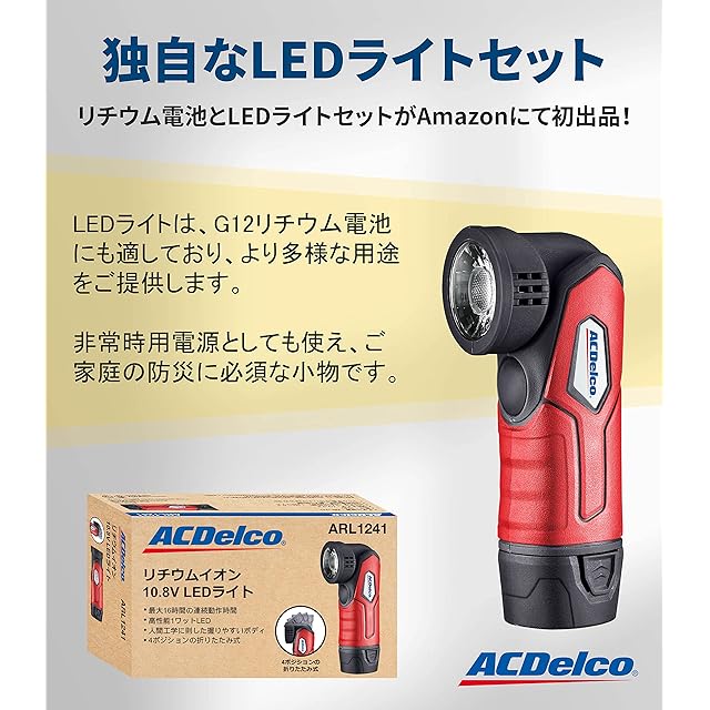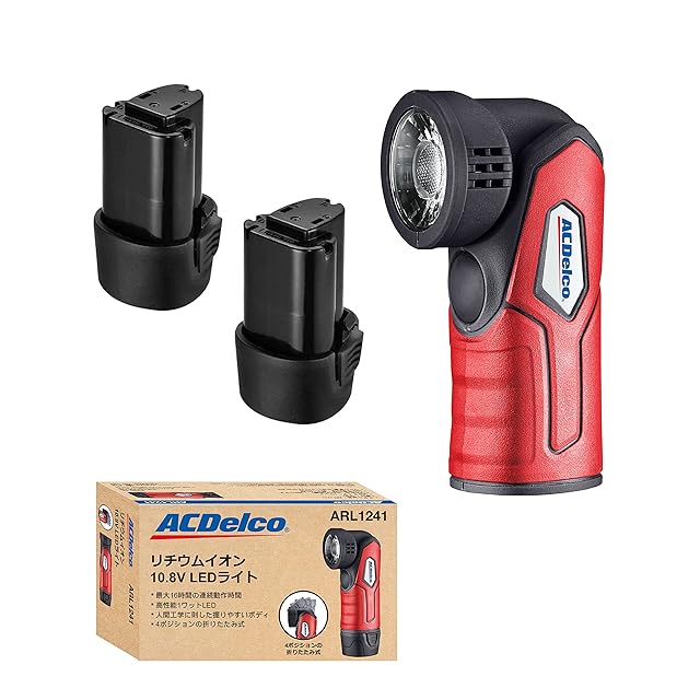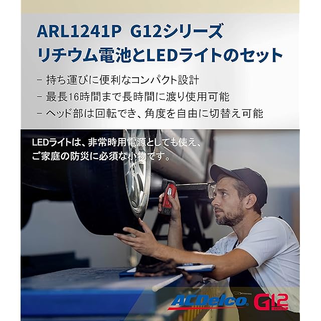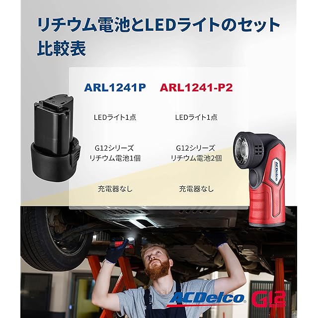 ACDelco G12 10.8V (12V MAX) 充電式リチウム電池とLEDライトのセット G12全シリーズのツール(ラチェットレンチ、ポリシャ、インパクトドライバー、電動ドリルなど)に適合 予備バッテリー2個(充電器なし)ARL1241-P2