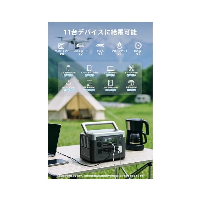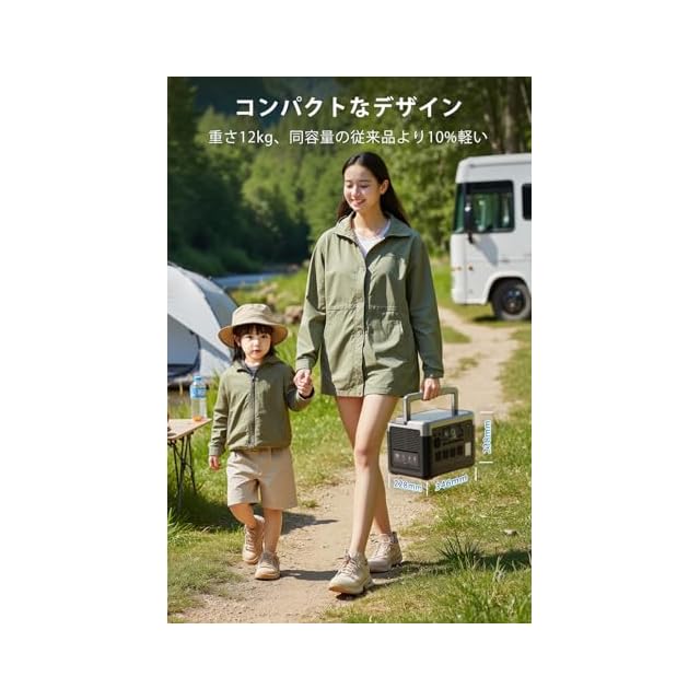 ⚡【コンパクトなのに豊かな出力口搭載】同容量帯の市販品より約10%軽量化しサイズもっと小さい。わずか11.7kgの重さで持ち運びも楽々。さらに、LEDライトが付きながら、AC出力コンセント (100V/1800W 純正弦波)x4口、USB-A*2、Type-C(100W)x1口、Type-C(20W)x1口、シガーソケット出力x1口、DCコンセントx2口を含む11個出力口から同時充電を行えます。