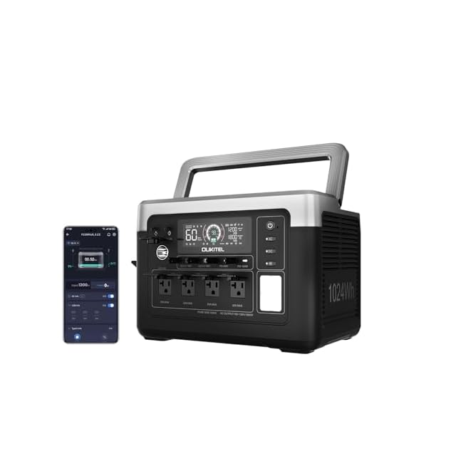 OUKITEL ポータブル電源 P1000 PLUS 大容量 1024Wh/320000mAh 43分フル充電 アプリ対応 AC1800W(瞬間最大3600W) AC充電電力調整可 AC/DC/USB出力 PD100W UPS機能 LEDライト付 アウトドア キャンプ 車中泊 節電対策 防災グッズ 地震停電非常用緊急電源 ソーラー充電 MPPT制御 50Hz/60Hz対応