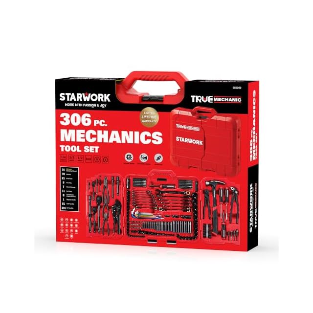 STARWORK TRUE MECHANIC™ ソケットレンチセット ラチェットレンチ工具セット 自動車とバイクの整備 作業工具 専用収納ケース付き - 306点組