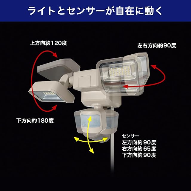 エルパ(ELPA) 防犯センサーライト 1500ルーメン 2灯 セキュリティ 防犯 二面発光 赤色警告灯 人感センサー 防犯対策 予知防犯 ESL-SS2002AC