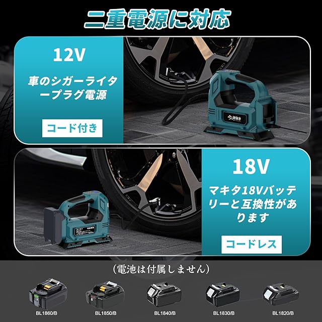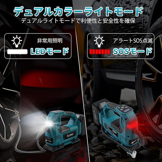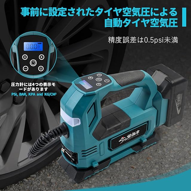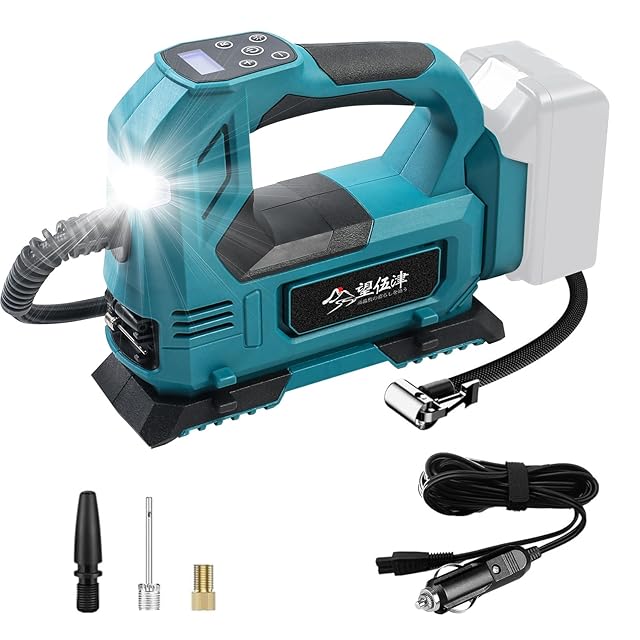 電動エアーコンプレッサー タイヤ充電式空気入れ 急速充填 12L/min 160PSI LEDディスプレー マキタ適合18VシリーズBL1830 BL1840 BL185 BL1850B BL1860 BL1860Bに対応 LED照明ライト付き(本体のみ)