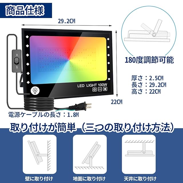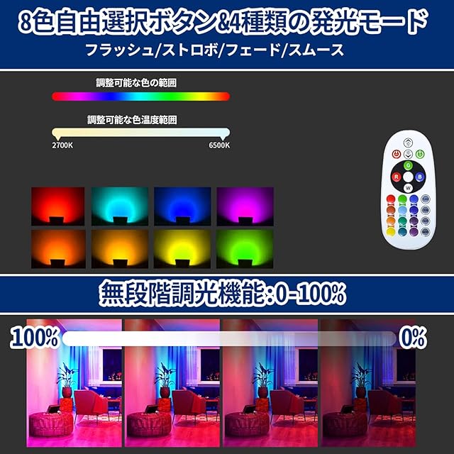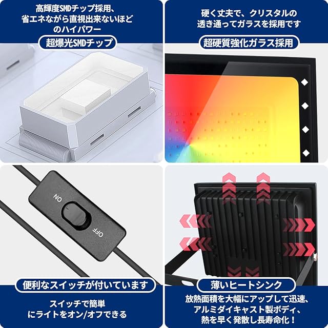 【用途広い&1年保証】このRGB投光器が美しい光を発して、夢幻の雰囲気を演出することができます。パネルシアター、舞台演出、舞台・看板の蛍光照明、クリスマスとハロウィンのパーティー、イベント、画廊、文化祭、発表会、祝日、パーティー、ダンスホール、結婚式、撮影、建物、駅、クラブ、集魚灯、街灯、ホールなどに適しています。分かりやすい日本語説明書付き、簡単に設置できます。1年間の保証サービスを提供いたします。ご購入日から1年間以内に製品に不具合が発生した場合、返金交換対応致します。お気軽にメールにてご連絡くださいますようお願いいたします。