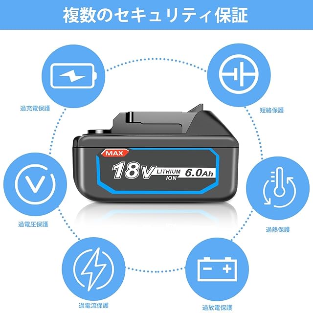 幅広く使われる: マキタバッテリー18v BL1860B 対応の機種:BL1860B、BL1850、BL1840、BL1830、BL1830B、BL1820B、BL1815、BL1815N など。このBL1860互換バッテリーはたっぶり6.0Ah 超高容量入っており、頻繁に充電する必要ないです