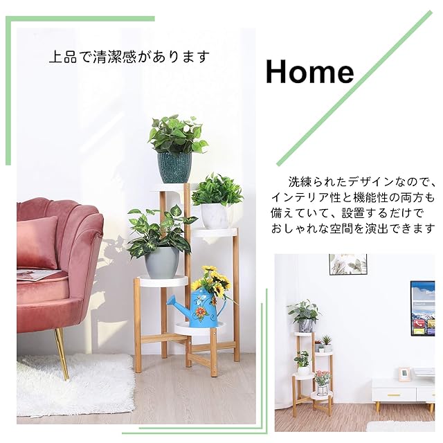 【おしゃれな北欧風の花台】竹素材を使用し、ナチュラルな風合いでどんな植物とも相性がよいです。上品で清潔感のあるホワイトの色で、部屋のインテリアにもなじみやすく、洗練された雰囲気を演出できます。植物だけでなく、お気に入りの雑貨やぬいぐるみなどを飾るのにもおすすめです