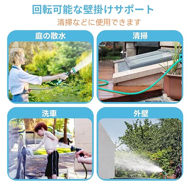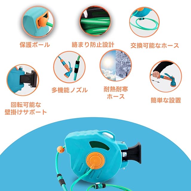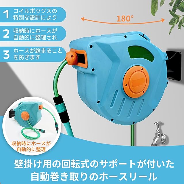 1. 【簡単な散水作業】もう毎日ホースを片付けたり、ポータブルなホースリールを持ち歩く必要はありません。壁に取り付けるだけで、自由に引き出して使用することができます。使いやすさに優れています。
