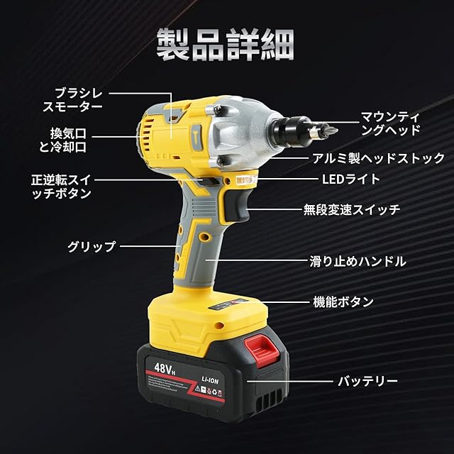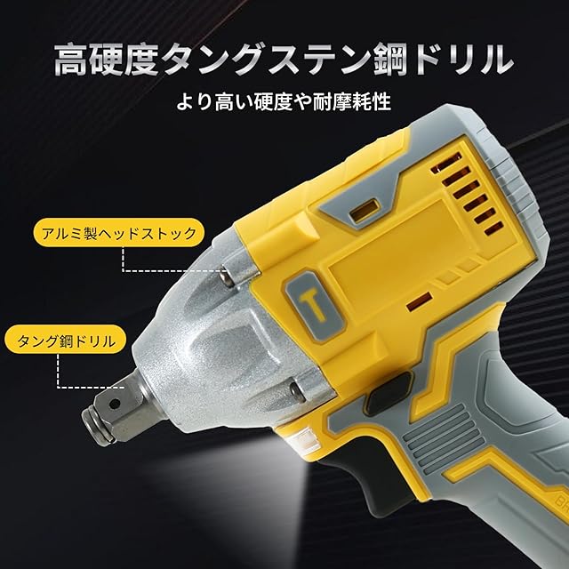 【ブラシレスモーター】このインパクトレンチはブラシレスモーターを採用し、ブラシモーターより耐久性が高く、騒音が少なく、安全性が高く、さらにモーターに過電流保護、過電圧保護、加熱保護が備え、安心してお使いいただけます。