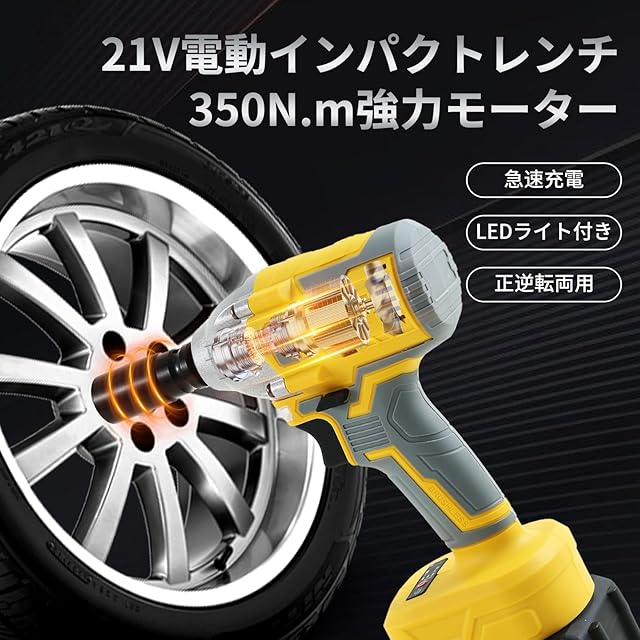一台三役 インパクトレンチ 電動 充電式インパクトレンチ コードレス 350N.m強力 21V大容量リチウムバッテリー2枚付き LEDライト付き 多機能 インパクト 電動ドライバー 無段変速 正逆転両用 ボルトの緩み タイヤ交換 家庭用