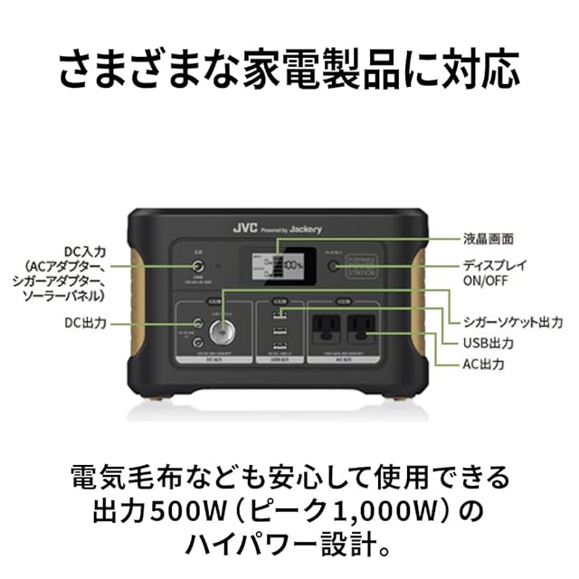 JVCケンウッド JVC BN-RB62-CA ポータブル電源 AC出力 500W 容量 626Wh 国内メーカー品質 家庭用 ポータブルバッテリー 防災 アウトドア キャンプ 正弦波