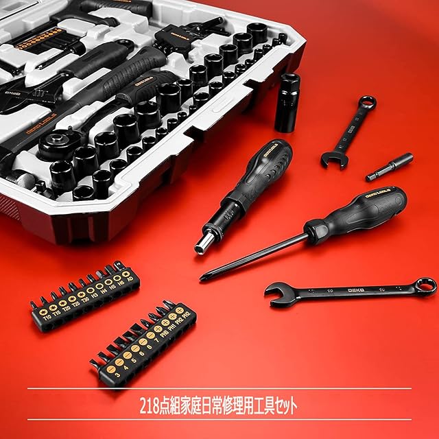 DEKO 218点組 工具セット ホームツールセット 家庭用 ツールセット 日曜大工 DIYセット 作業工具セット 家具の組み立て 住まいのメンテナンス用 修理道具セット 便利な収納ケース付き