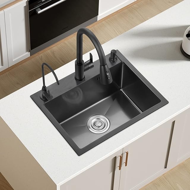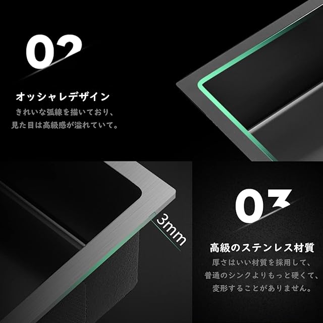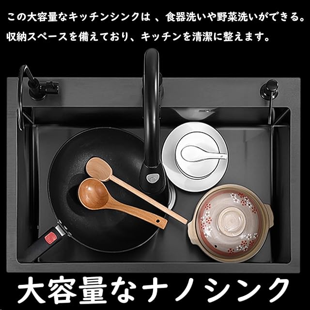 【最新ナノ技術を採用】エコ材質、シンクは大きくて深い、汚れを防いで色褪せない、重圧に抵抗して、耐熱性、耐食性、清潔やすくて、磨耗に耐えて、3.0MM厚いシンク:堅くて、大きな水槽のためにカスタマイズされた設計で、変形不可能。