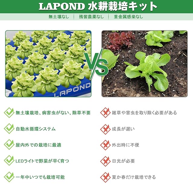 【高級版水耕栽培システム】LAPOND高級版水耕栽培が青いパイプと黒いホースをアップグレードし、藻の繁殖を抑制!高品質の水耕栽培スポンジをアップグレードし、強い通気性、発芽率を向上させる!弊社の水耕栽培システムは新鮮な果物や野菜を栽培するための独特な方法を提供しており、土壌を必要とせず、屋内でも屋外でも、ベランダ、庭、自宅などさまざまな場所で栽培することができます。初心者に優しく、必要な付属品がすべて揃っているので、簡単に組み立てて使用することができます。種、養液、バケツを用意すれば、すぐに栽培を楽しむことができます!